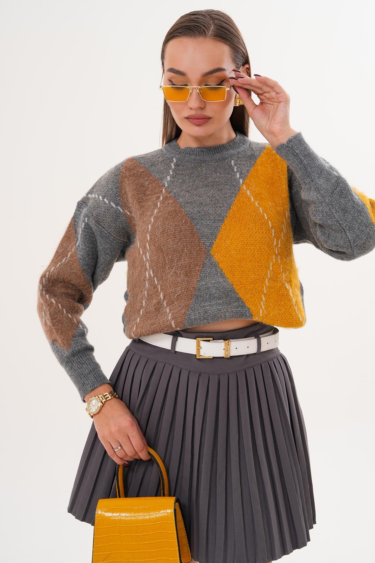 Kadın Baklava Desenli Triko Örme Kazak 255142 -