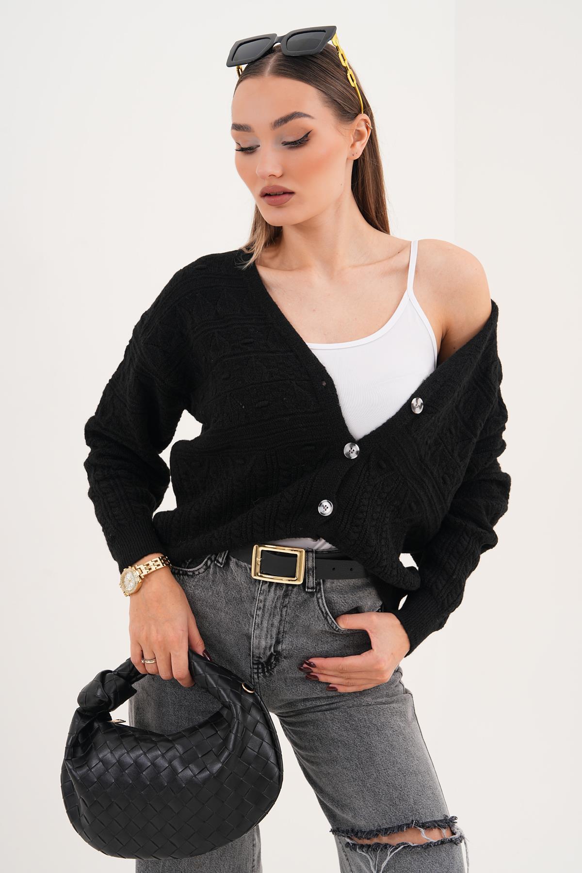 Kadın Dört Düğmeli Desenli Triko Örme Hırka 255373 - (255373)