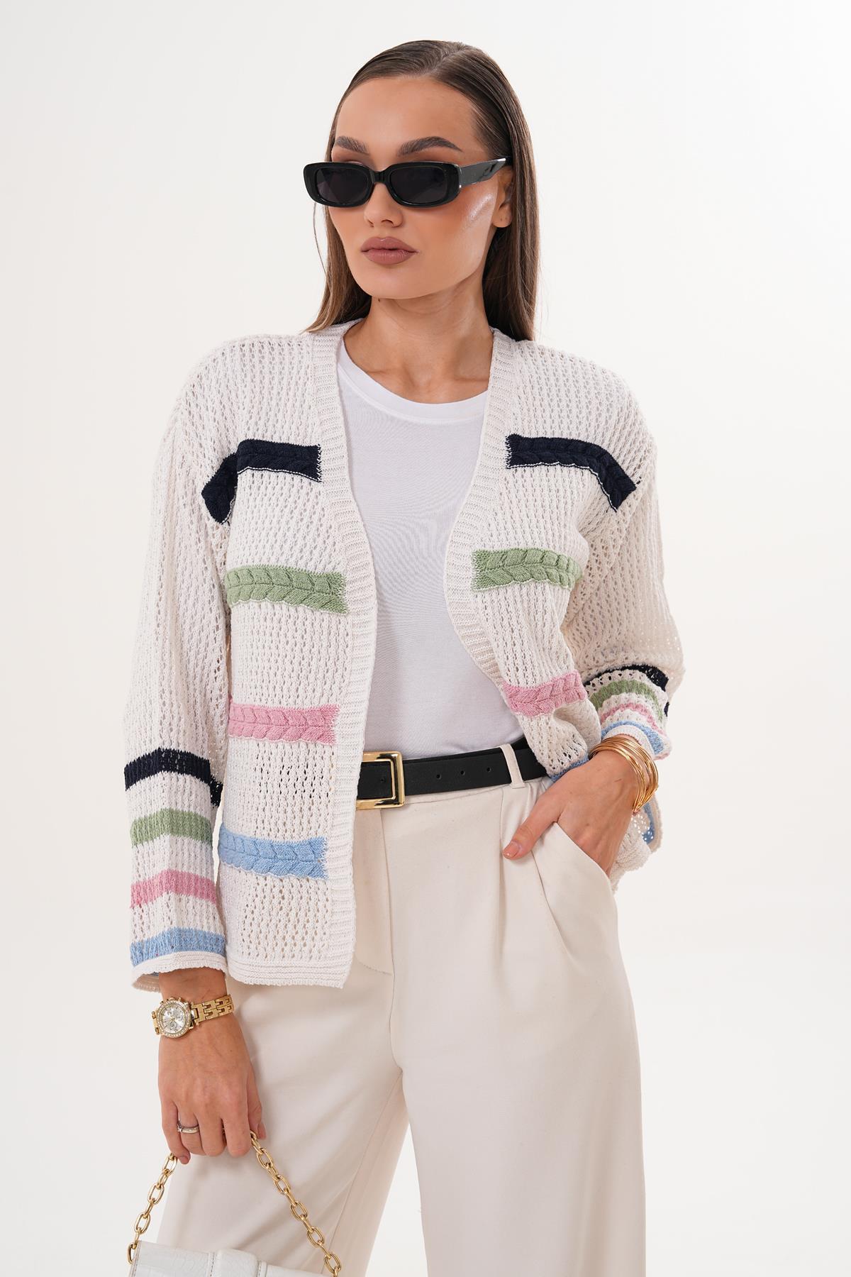 Kadın Renkli Çizgili Önü Açık Hırka 255413 - (255413)